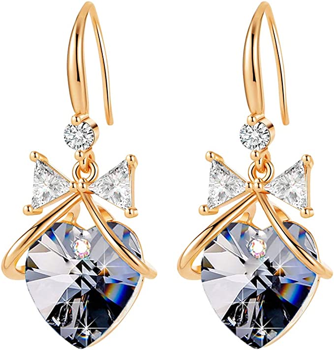 Austrian Crystal Bowknot Heart Drop Dangle Earrings for Women Fashion 14K Gold finish Hypoallergenic Jewelry