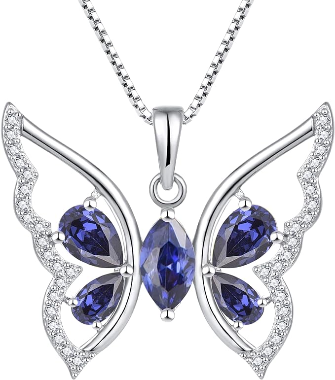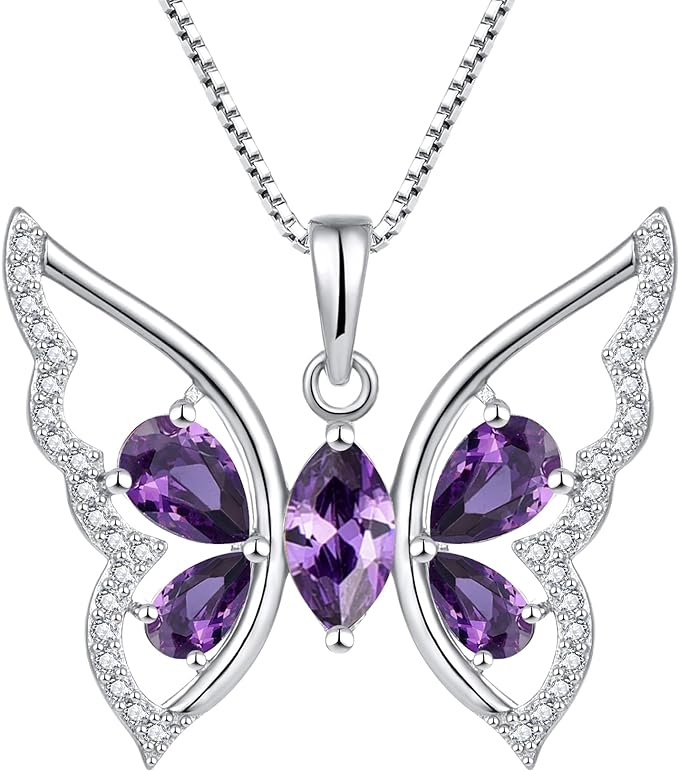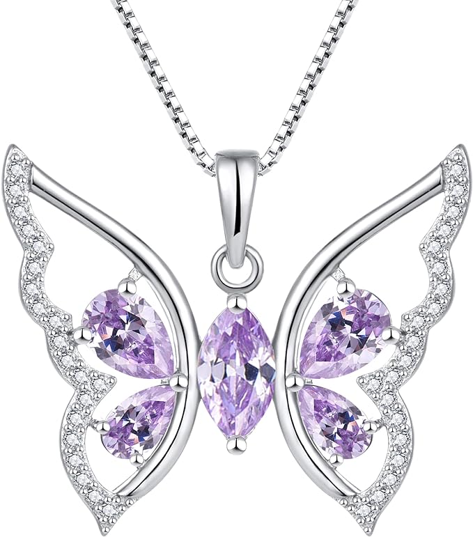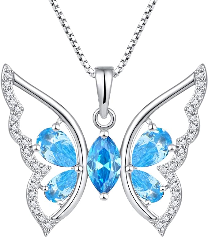 Butterfly Necklace for Women 925 Sterling Silver Birthstone Butterfly Pendant Jewelry Gifts
