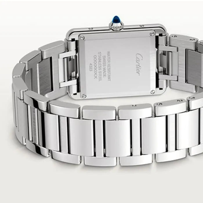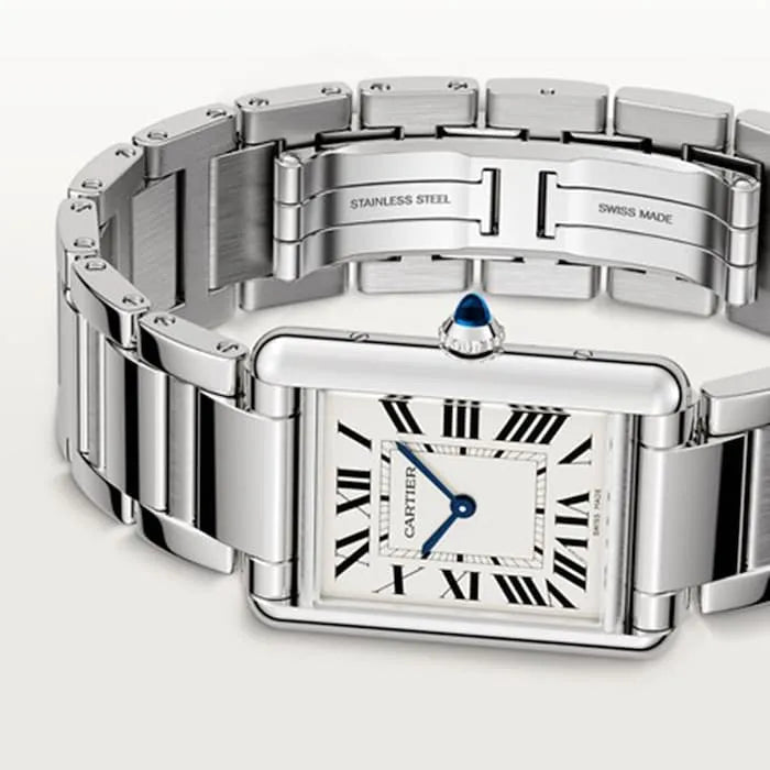 The Cartier Tank Must Large Model Quartz Movement Steel 33.7mm X 25.5mm (Reference WSTA0052) epitomizes classic sophistication and modern functionality, making it a perfect choice for those who value elegance and precision.