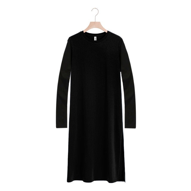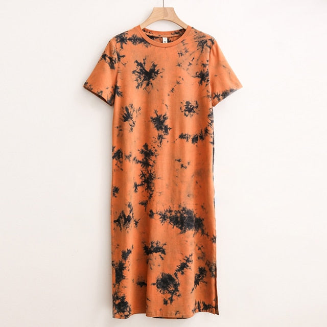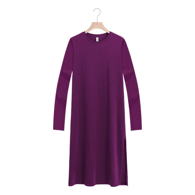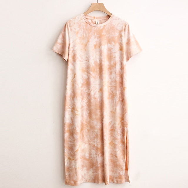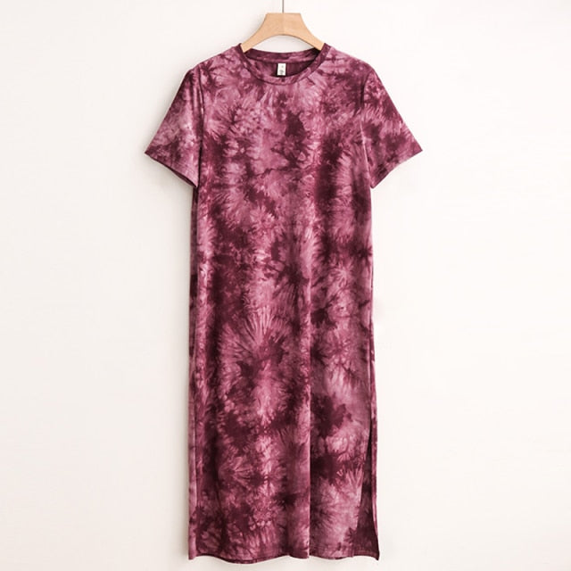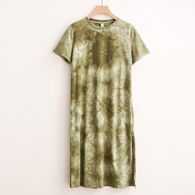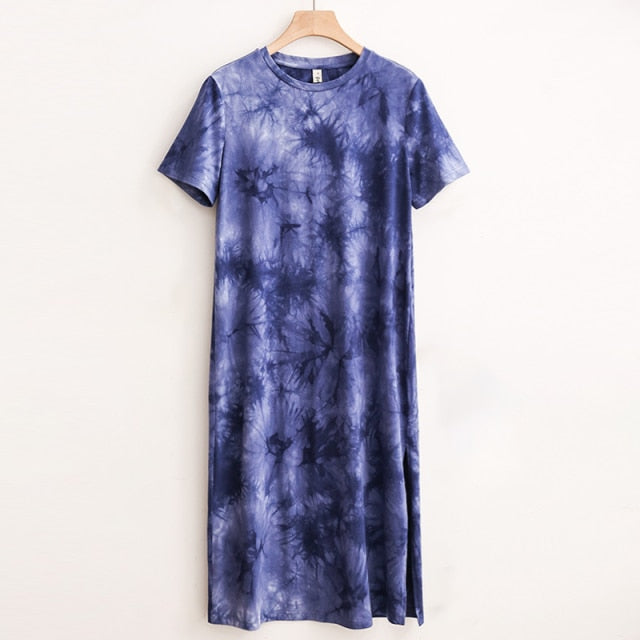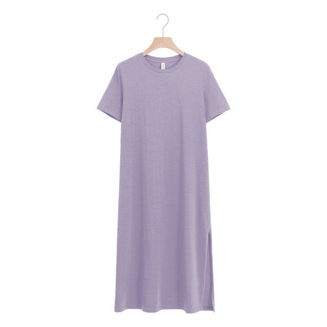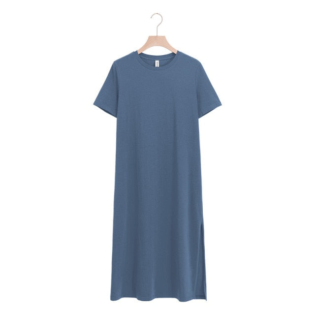 Casual Women Split Long Dress O-neck Short Sleeve Solid blue Summer Y2K Cotton T shirt Dress Sales M30465