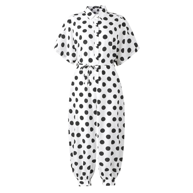 Celmia Women Jumpsutis Fashion Polka Dot Rompers Casual Loose Short Sleeve Cargo Pants Plus Size Summer 2021 Overalls Femme