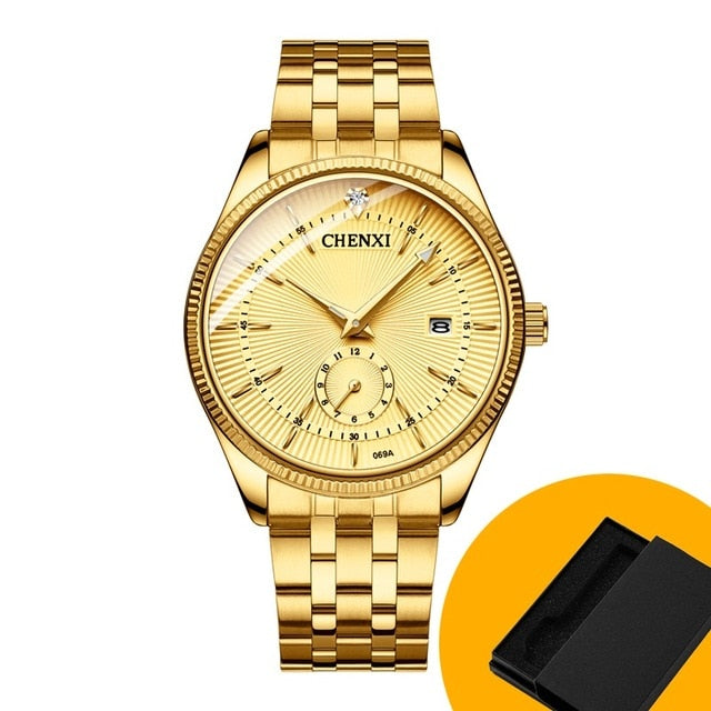 CHENXI Gold Wrist Watch Men Watches Lady Top Brand Luxury Quartz Wristwatch For Lover's Fashion Dress Clock Relogio Masculino