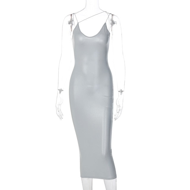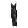 Dulzura Pu Faux Leather Women Slit Midi Dress Strap V Neck Backless Bodycon Sexy Streetwear Party Elegant Autumn Winter Club
