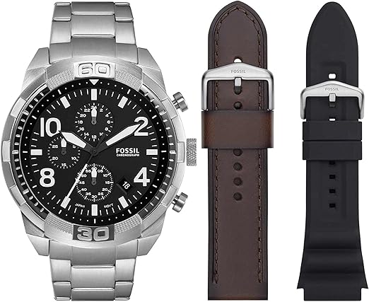 Fossil Men's Watch with Stainless Steel Bracelet or Genuine Leather Band, Chronograph or Three-Hand Analog Display