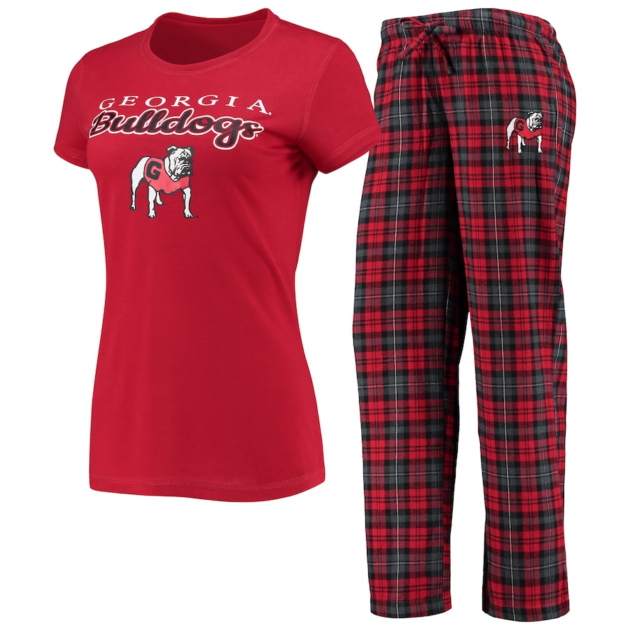 Georgia Bulldogs Concepts Sport Women's Lodge T-Shirt & Flannel Pants Sleep Set - Red/Black