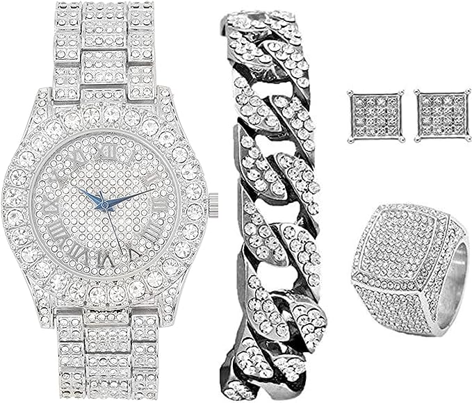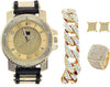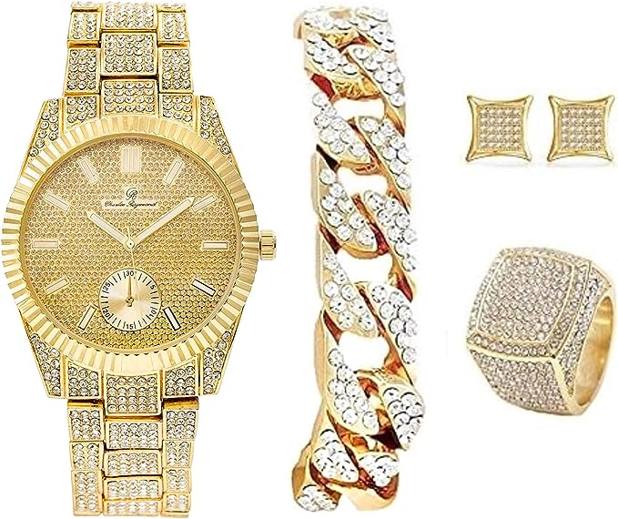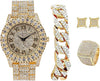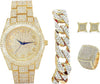 Hip Hop Watch & Jewerly Set w/Cuban Chain Bracelet, Kite Bling Earrings & Ring - GJM13