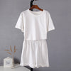 Hirsionsan Summer Cotton Sets Women Casual Two Pieces Short Sleeve T Shirts and High Waist Short Pants Solid Outfits Tracksuit