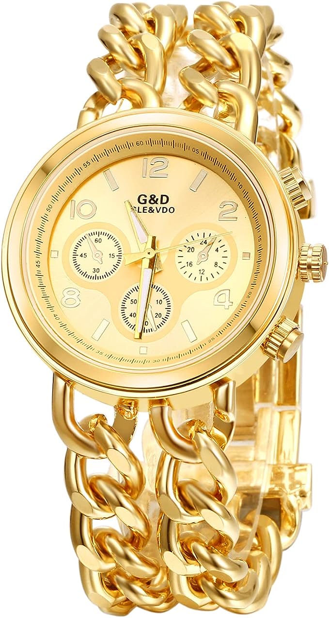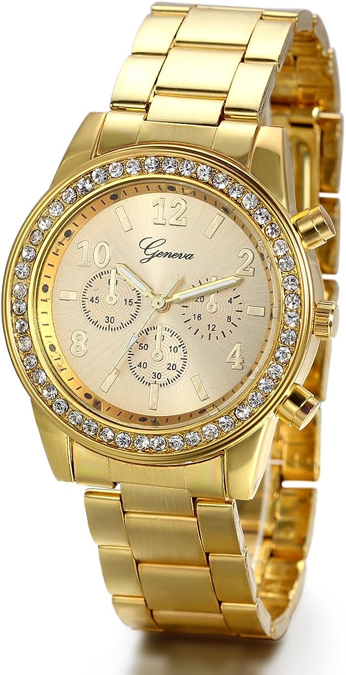 JewelryWe Luxury Mens Dress Watch, Stainless Steel Bling Rhinestones Accented Quartz Wrist Watches - Gold, for Halloween