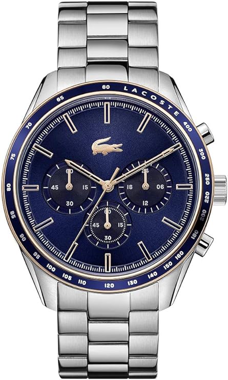 Lacoste Boston Men's Quartz Chronograph Ionic Plated Carnation Gold Steel & Navy Aluminium Case With Stainless Steel