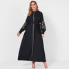 Ladies Fashion Resort Small Stand Collar Floral Embroidery Long Sleeve Loose Belt Sweet Elegant Woman Black Party Maxi Dress 4XL