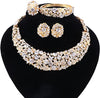 Luxury gold Plated Shinning Flower Crystal Necklace Earrings Bangle Ring Jewelry Set