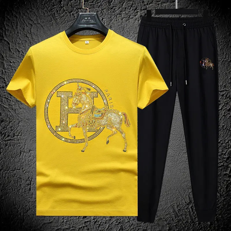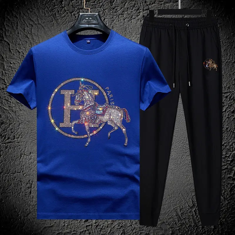 Luxury High Quality Two Piece Sets for Men Fashion Casual Hot Diamond Jewelry Short Sleeve Set