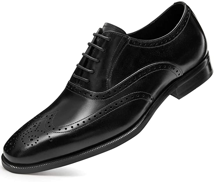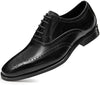 Men’s Dress Shoes with Genuine Leather in Classic Brogue Elastic Band Oxford Formal Shoes for Men