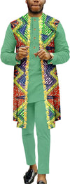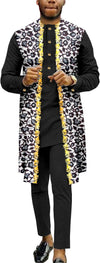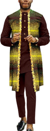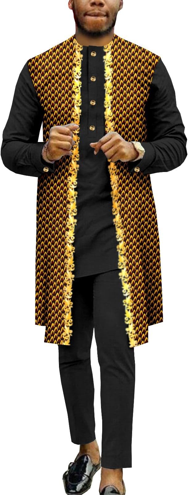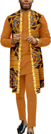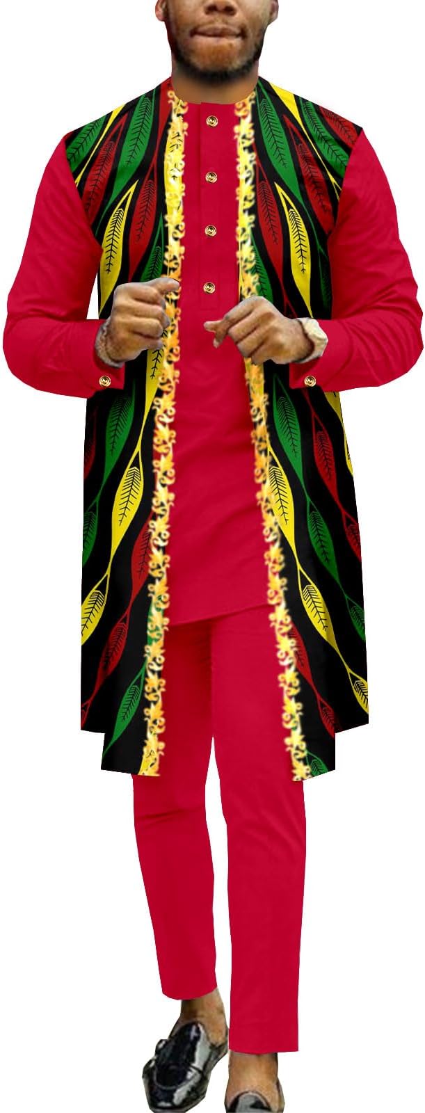 Men Single Breasted Embroidery Print Shirts and Pants 2 Piece Set Outfits