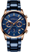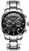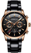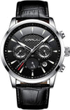 Men's Business Casual Chronograph Quartz Waterproof Wristwatch Black Leather Strap