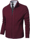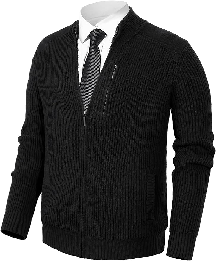 Men's Cardigan Sweaters Full Zip Up Stand Collar Slim Fit Casual Knitted Sweater with 2 Front Pockets