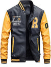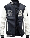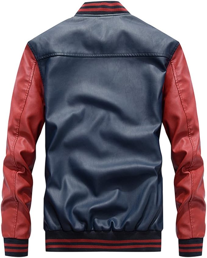 Men's Faux Leather Jacket Casual Baseball Stand Collar Slim Fit Coat