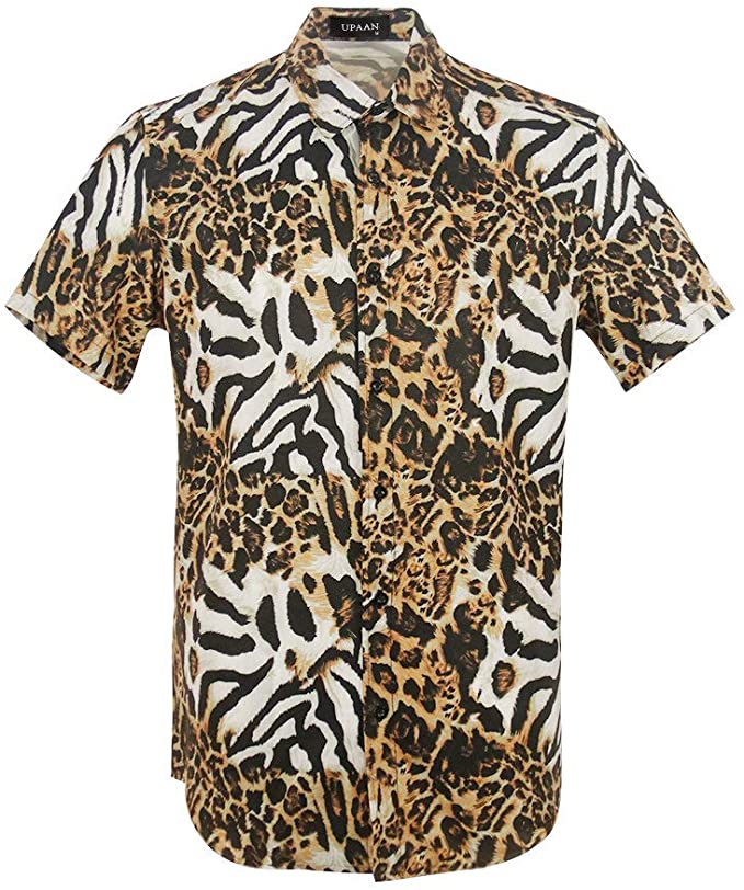 Men's Leopard Printed Disco Shirts Short Sleeve Button Down Casual Shirt