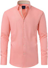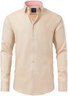 Men's Long Sleeve Slim Fit Casual Shirts Contrast Collar and Convertible Cuffs Dress Shirt