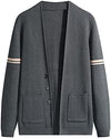 Mens Loose Fit Cardigan Sweaters with Pockets Casual Solid Color Open Front Cable Knitted Sweater Button Down Cardigan