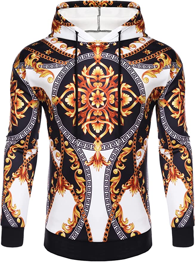 Men's Luxury Casual Long Sleeve Floral Print Hooded Sweatshirt