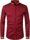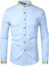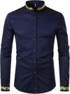 Men's Luxury Gold Embroidery Design Slim Fit Long Sleeve Button Up Dress Shirts