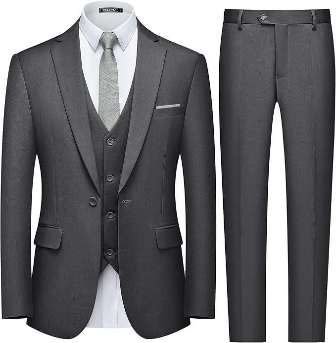 Men's Slim Fit 3 Piece Suit, One Button Solid Blazer Business Party Jacket Vest Pants Set