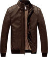 Men's Stand Collar Fleece Lined Bomber Faux Leather Jacket