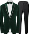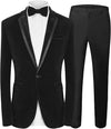 Mens Velvet 2 Piece Suit Spliced Lapel One Button tuxedo blazer with pants