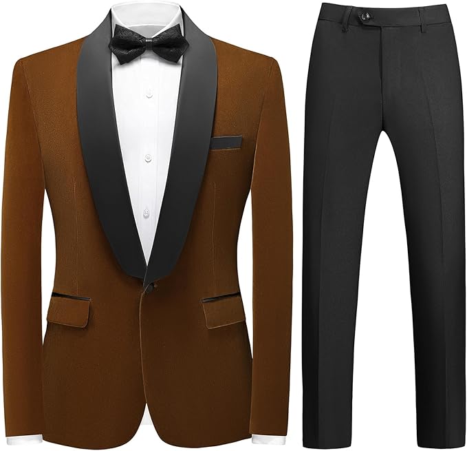 Mens Velvet Suits Slim Fit 2 Piece Tuxedo Suit for Men