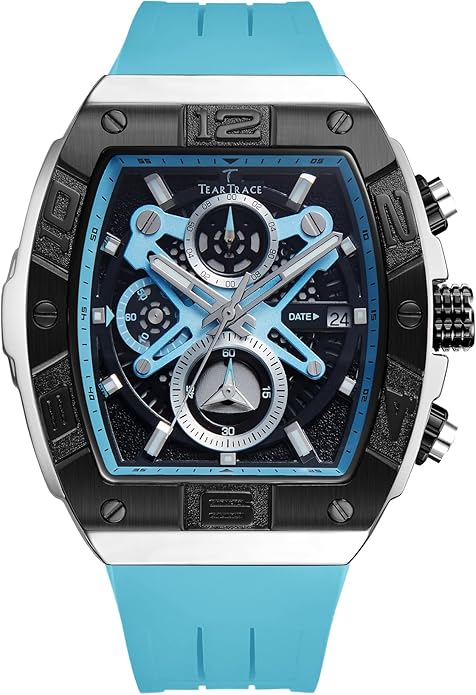 Men's Watch Analog Waterproof Fashion Date Wrist Watch, Skeleton Tonneau Watch for Men with Chronograph,Ideal for Sports Enthusiasts