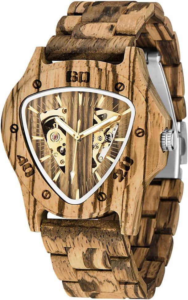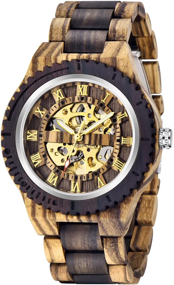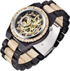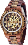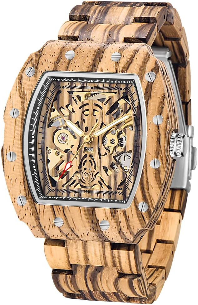 Men's Wooden Watch Skeleton Automatic Movement Wood Watch Self-Winding Watches for