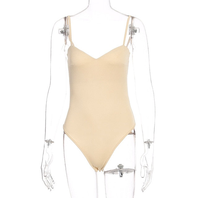 Nadafair Spgahetti Strap Sexy Bodysuit Pure Bodycon Bodysuit Women 2020 V Skinny Summer Black Top Female For Woman Basic Top