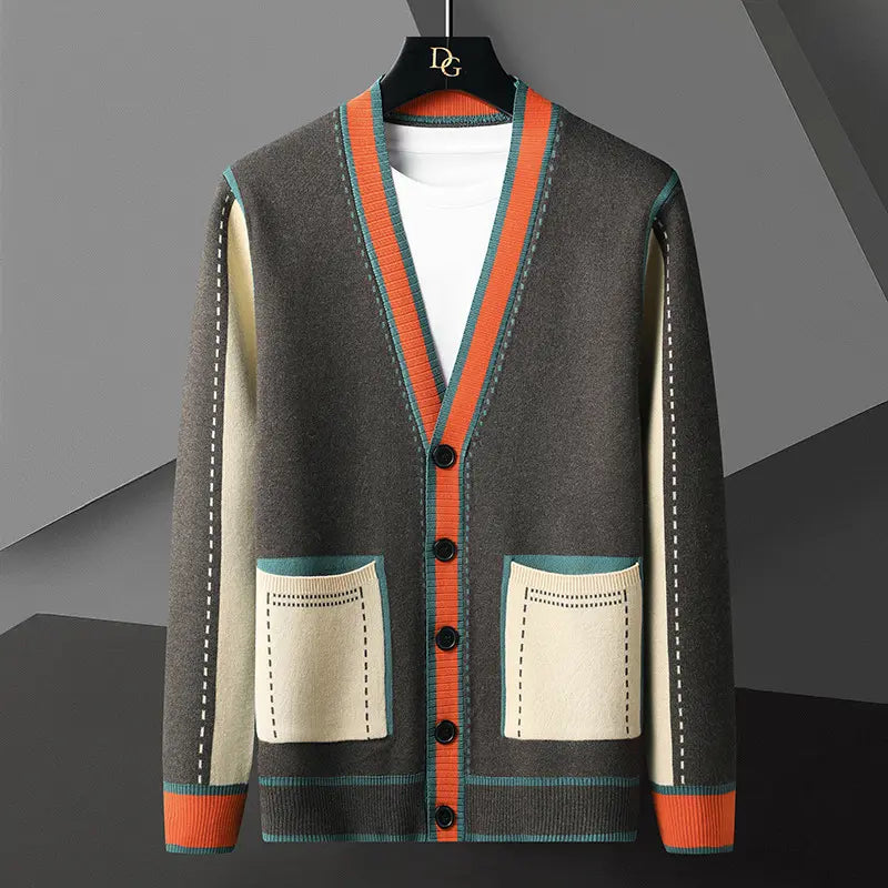 New 2025 Winter Jacquard Sweater Men's Knit Sweaters Korean Fashion Cardigan Sweater