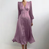 OOTN Beige Single Breasted Sexy Dress Party Clud High Waist Satin Long Dress Elegant V Neck Women Midi Dresses Lantern Sleeve