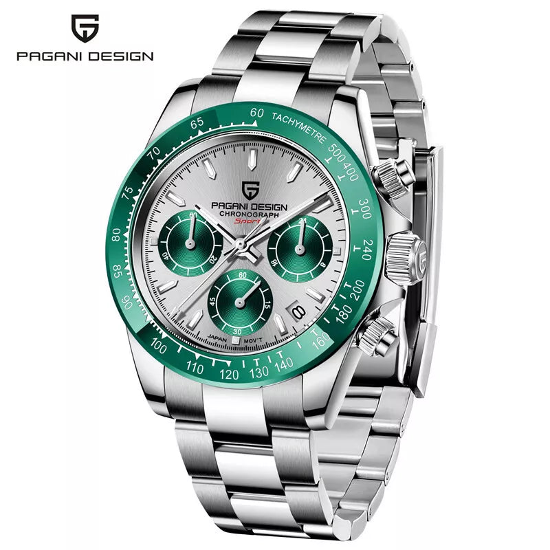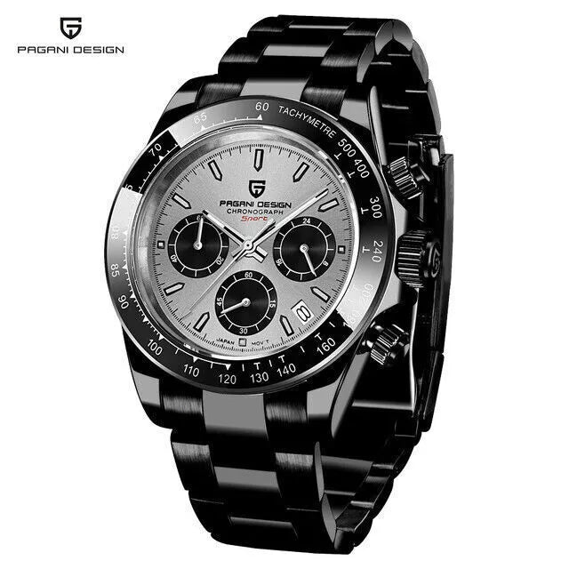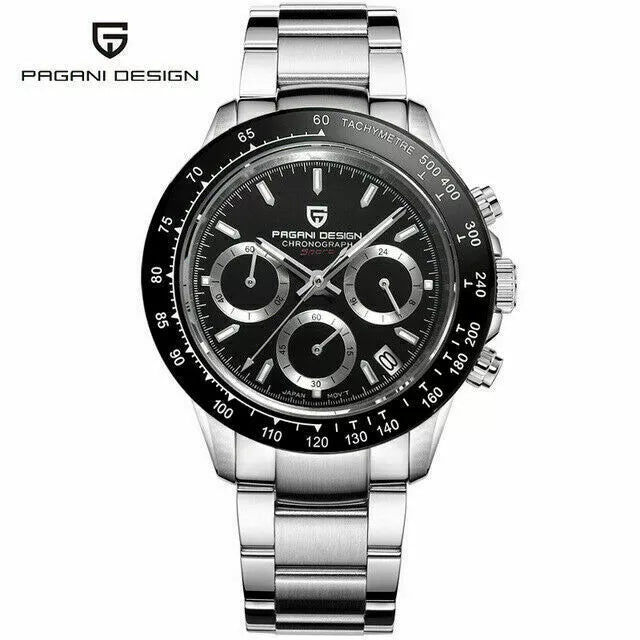 PAGANI DESIGN Men's Watches Japan Quartz Wrist Watch Chronograph Steel Band Box