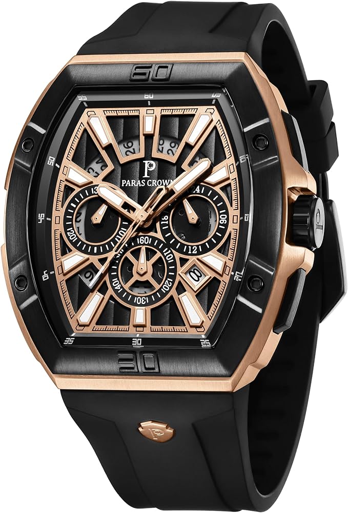 Paras Crown Watch for Men Waterproof Quartz Luxury Chronograph Analog Men's Wrist Watches