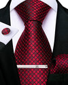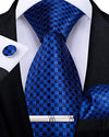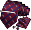 Plaid Tie Men's Silk Tie and Pocket Square Cufflinks Tie Clip Set Wedding Business