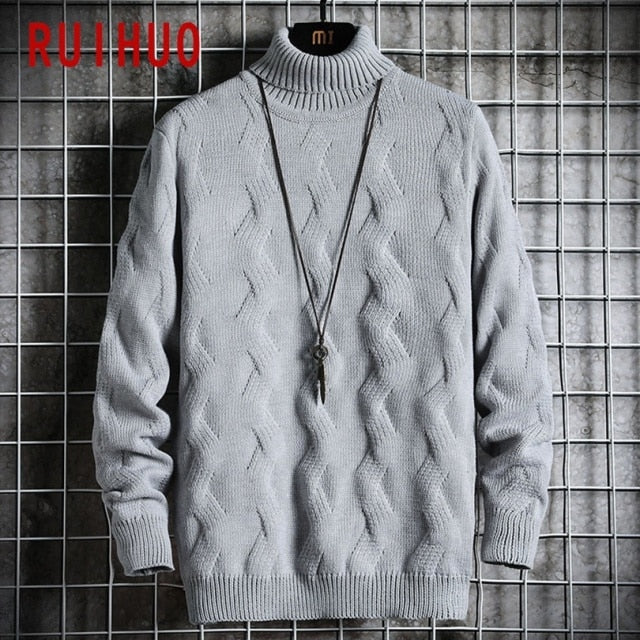 RUIHUO 2021 White Pullover Turtleneck Men Clothing Turtle Neck Coats High Collar Knitted Sweater Korean Man Clothes M-2XL