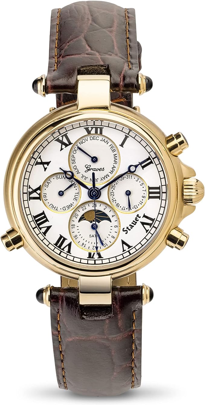 Stauer Automatic Wrist Watch for Men – Mens Watches w/Genuine Brown Leather Band – Gold Finished Automatic Watches for Men – Water Resistant Analog Watch – Stylish Gifts for Men
