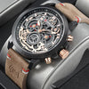 Watches for Men Business Chronograph Big Face Skeleton Quartz Watch Dress Classic Luminous Analog Calendar Waterproof Wristwatch for Leather Stra