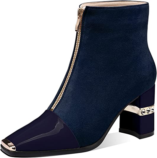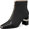 Women Ankle Booties Square Toe Chunky High Heel Boots Zipper Black Casual Booties for Women