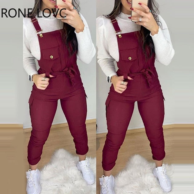 Women Buckled Pocket Design Solid Suspender Jumpsuit Bodycon Jumpsuit One Piece Jumpsuit