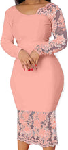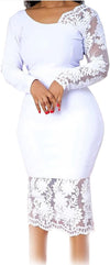 Women Elegant Floral Lace Patchwork Long Sleeve Evening Gown Party Cocktail Bodycon Dress