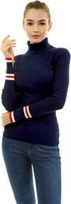 Women Long Sleeve Striped Split Cuff Turtleneck Ribbed Pullover Sweater