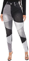 Women Mid Waist Stretchy Patchwork Denim Pants Jeans