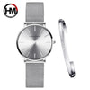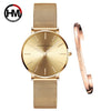 Women Watch 1 set Bracelet Japan Quartz Movement Simple Waterproof Rose Gold Stainless Steel Mesh Ladies watch relogio feminino