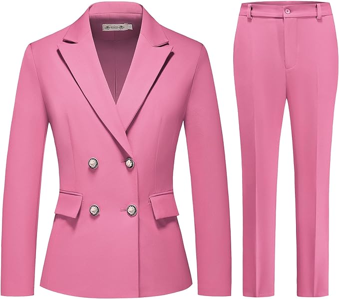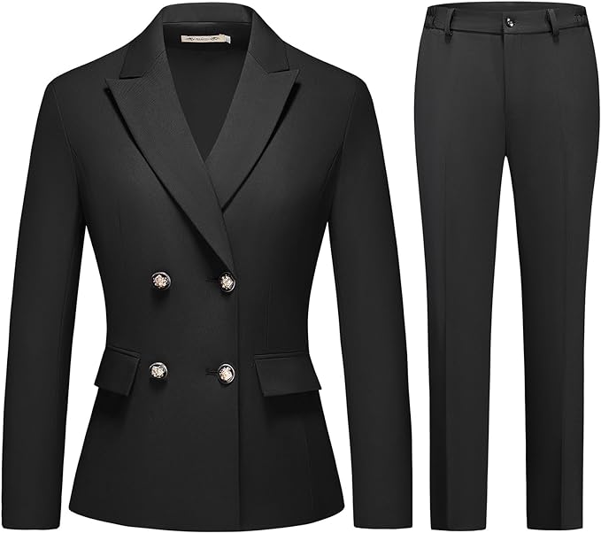 Women's 2 Piece Business Suit Double Breasted Blazer and Pants Work Suit Set