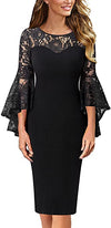 Womens Bell Sleeve Cocktail Party Bodycon Pencil Sheath Dress