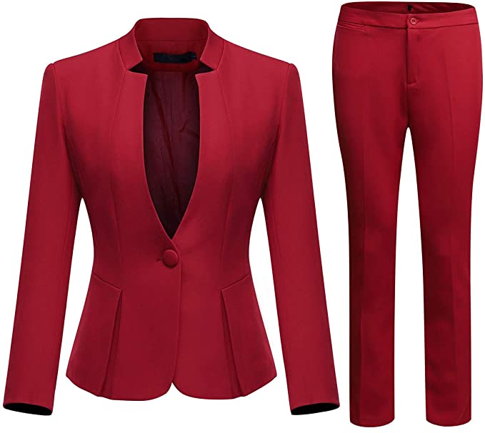 Women's Business Office 1 Button Blazer Jacket and Pants Suit Set